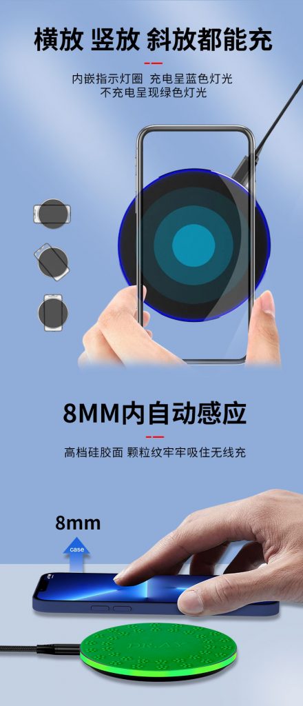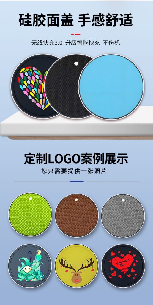场景一(日常高频场景版) 在工位上,它是拯救桌面杂乱的小帮手:硅胶表层稳稳托住手机,打字时不晃不滑,铝合金底壳快速散热,15W 快充让你摸鱼刷剧时电量不掉线;印上公司 LOGO,还能成为工位上的隐形名片。回到家,沙发旁、床头柜随手一放,软弹硅胶不冰手,深夜追剧不用再扯着充电线,定制的萌趣图案还能和你的家居软装完美呼应,让充电变成生活里的小默契。