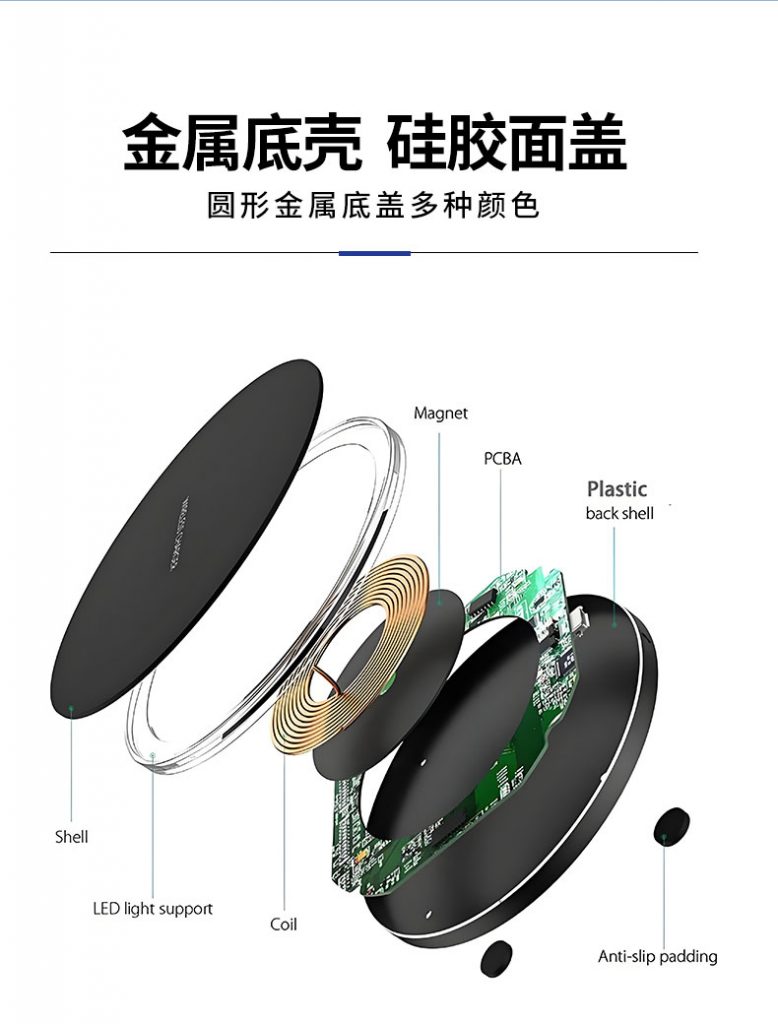 这款硅胶无线充,硅胶 + 铝合金双材质强强联合,一面是软弹亲肤的硅胶表层,贴合掌心不打滑,冬日放置也不冰手;一面是细腻磨砂的铝合金底壳,散热耐用更显质感。15W 快充功率,手机随手一放就能快速回血,追剧办公不等待。舒适的握感让充电变成日常小享受,更支持图案与 LOGO 全定制,无论是企业采购做伴手礼,还是私人打造专属标识,都能让这块小圆垫成为你的桌面质感担当。