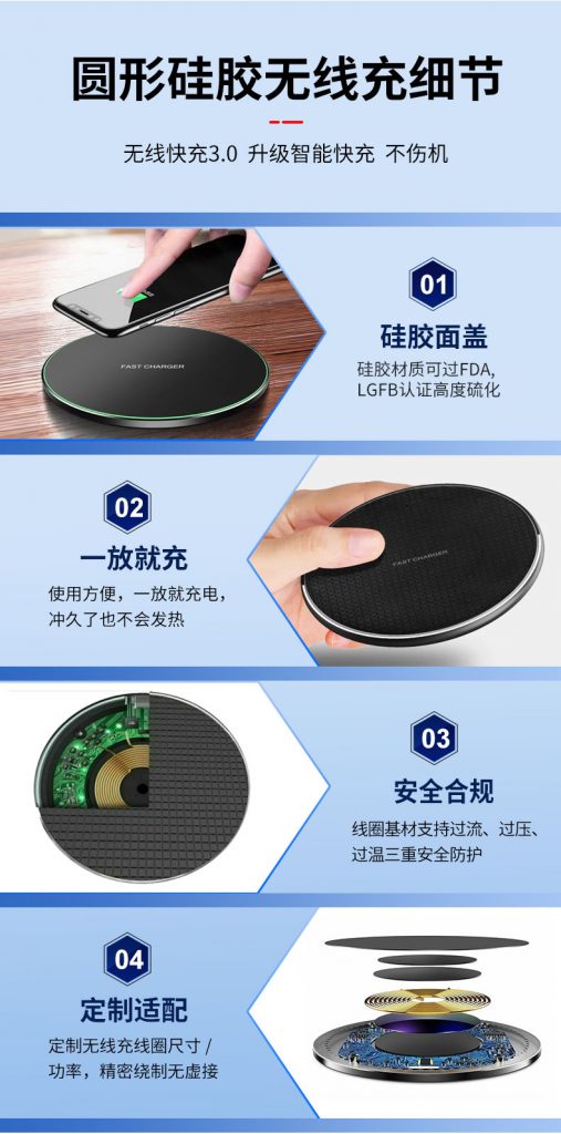 场景二(社交 & 送礼场景版) 作为企业伴手礼,它是体面又实用的选择:定制专属 LOGO 与品牌图案,硅胶 + 铝合金的质感尽显用心,15W 快充满足客户日常需求,放在办公桌上既是实用工具,也是流动的品牌名片。朋友聚会时,带它去咖啡馆,硅胶防滑底纹稳稳贴住桌面,不用再担心手机滑落;节日送礼时,印上对方喜欢的插画或纪念日图案,让这块小圆垫成为兼具心意与实用性的专属礼物,每次充电都能想起你的用心。