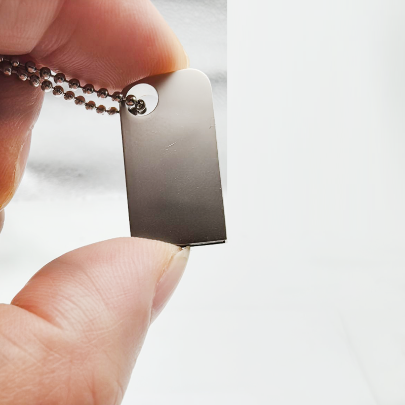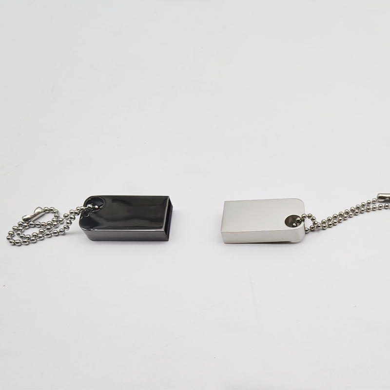这枚金属小 U 盘像随身 “秘密口袋”—— 电镀黑 + 银双配色自带质感,指甲盖大小揣进钥匙串、挂在包链上毫无负担。还能刻上专属 LOGO,把重要资料 “焊” 在身边~