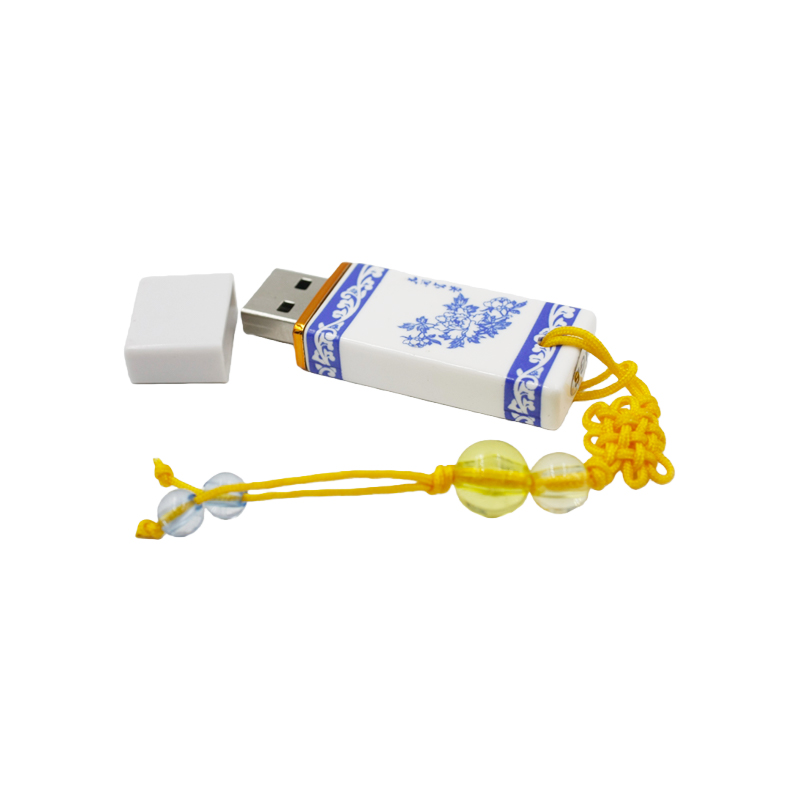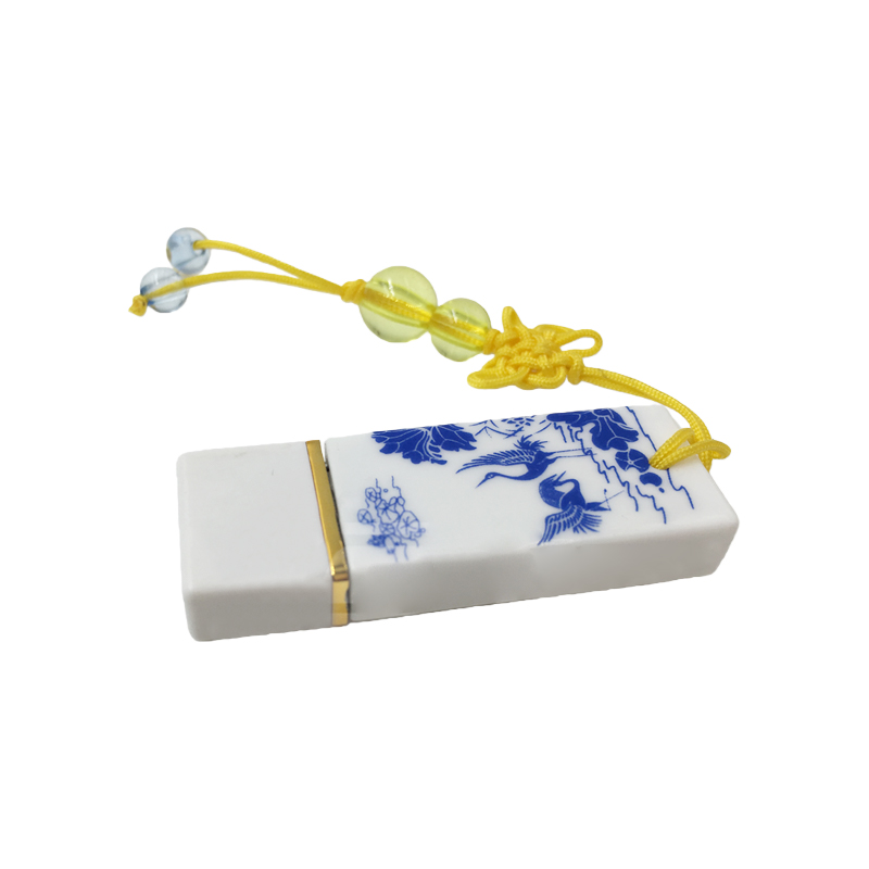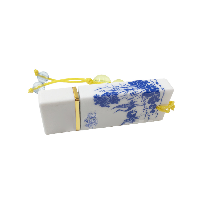 这枚青花 U 盘,是把‘雨过天青云破处’的颜色揣进了口袋 —— 瓷面裹着靛蓝纹样,存文件时,连数据都沾了古窑的雅致。2.0/3.0 接口里,装的是现代数据,裹的是古意温柔,印上 LOGO 后,连专属标识都沾了诗意。