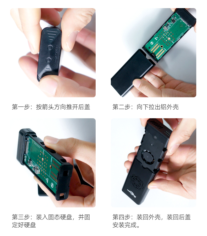 产品材质:外壳铝合金,中框ABS传输速度:10Gbps/20Gbps两个版本支持硬盘:M.2SSD2242/2260/2280