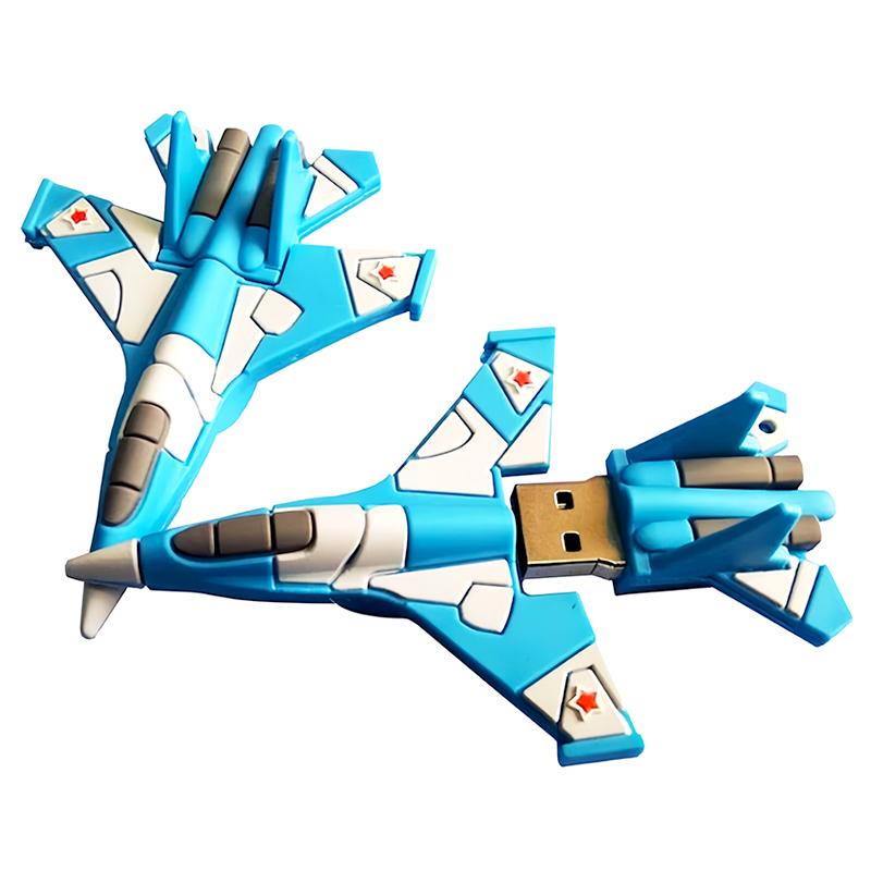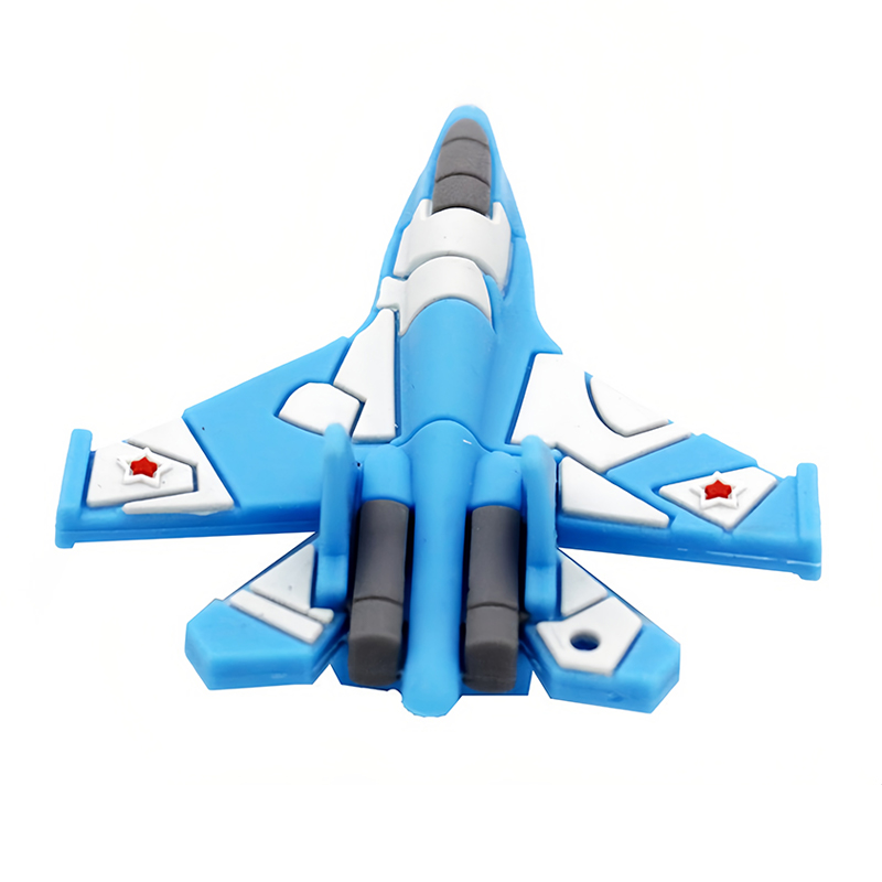以酷炫战机为原型设计的创意 U 盘,蓝 / 绿 / 黑多色还原战机风格,采用柔韧耐摔的环保软胶材质 , 既复刻了战机的锐利机身轮廓、机翼标识等细节,又具备高速存储功能(支持 4G-128G 容量定制),是颜值、实用性与趣味性兼具的数码礼品,自带 “吸睛属性”。